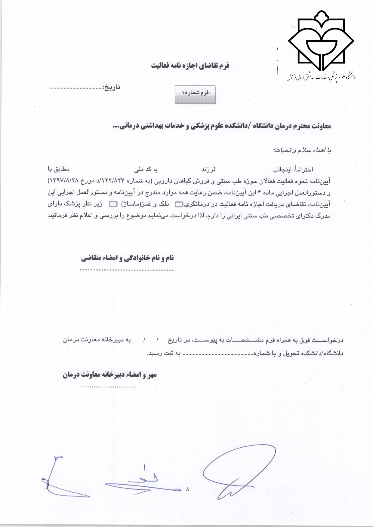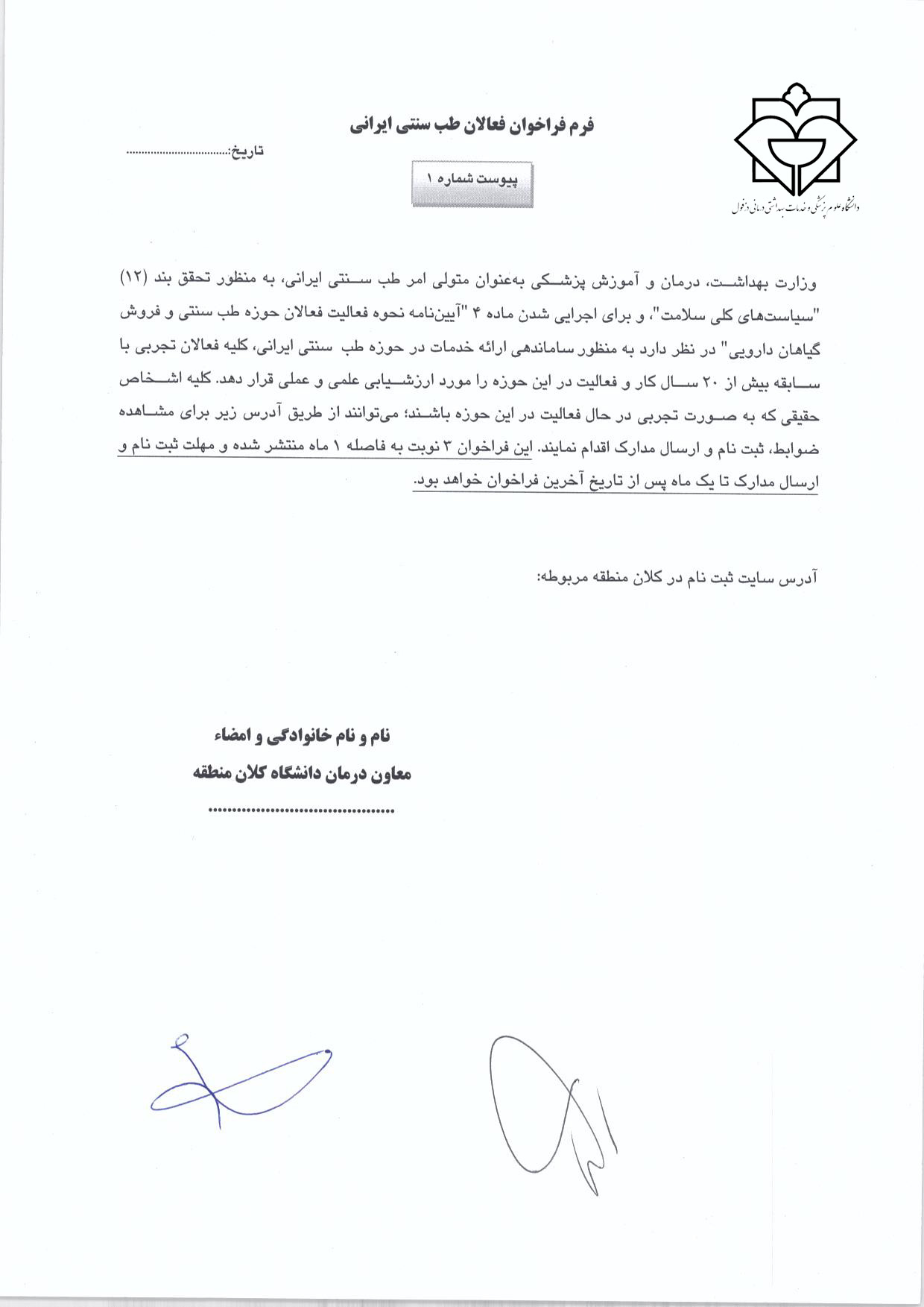 بارگذاری فرم های تعیین صلاحیت،حدود وظایف و صدور مجوز فعالیت فعالان حوزه طب سنتی